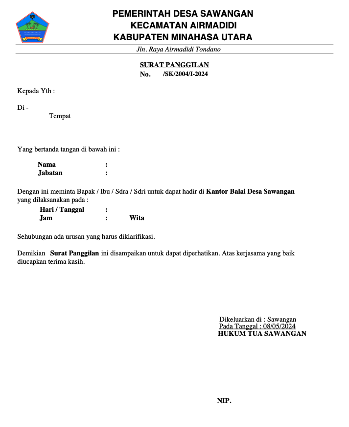 Surat Pengantar Panggilan